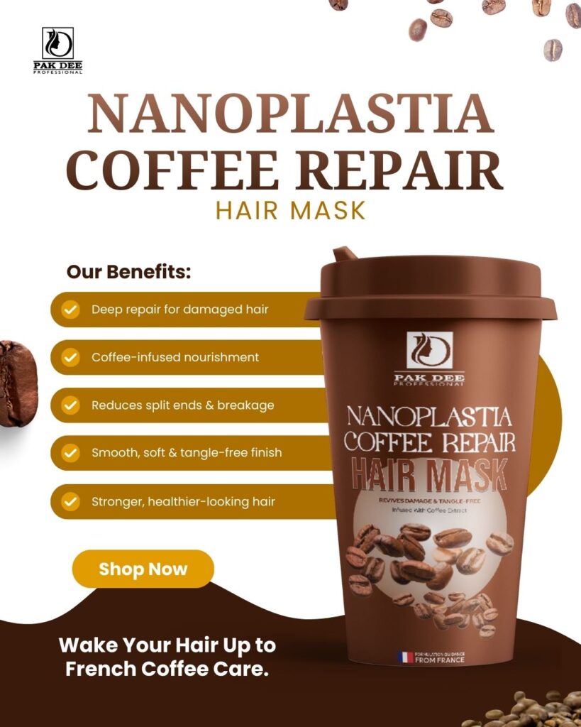 ₹599.00Original price was: ₹599.00.₹499.00Current price is: ₹499.00. Add to cartPAK DEE Professional Nanoplastia Coffee Repair Hair Mask is specially formulated to revive dull, dry and damaged hair with the power of rich coffee extract. This advanced repair mask penetrates deep into the hair structure to restore strength, smoothness and shine. It helps reduce breakage, split ends and roughness while providing intense nourishment for perfectly soft, silky and manageable hair. Ideal for frizzy, chemically-treated, weak or damaged hair, it delivers salon-like smoothness with every use, leaving hair stronger, healthier and beautifully rejuvenated.