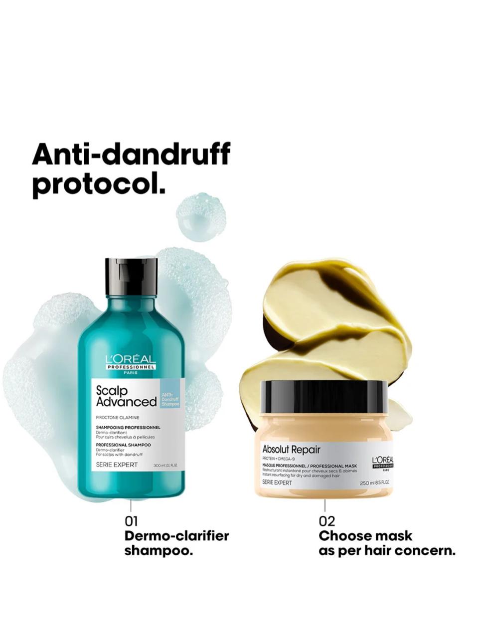 L’Oréal Professionnel Scalp Advanced Anti-Dandruff Shampoo is a professional dermo-clarifying shampoo specially formulated for dandruff-prone scalps. Powered by Piroctone Olamine, it helps effectively remove visible dandruff, reduce flakes, and purify the scalp while maintaining scalp comfort.
